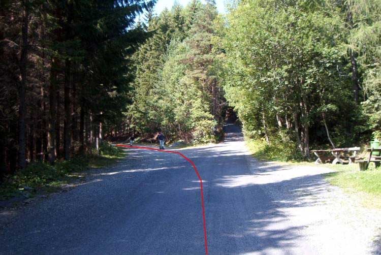 Hier verläuft unser Weg GERADE AUS (nicht dem Schotterweg entlang) Richtung Gasthof ENZIAN.